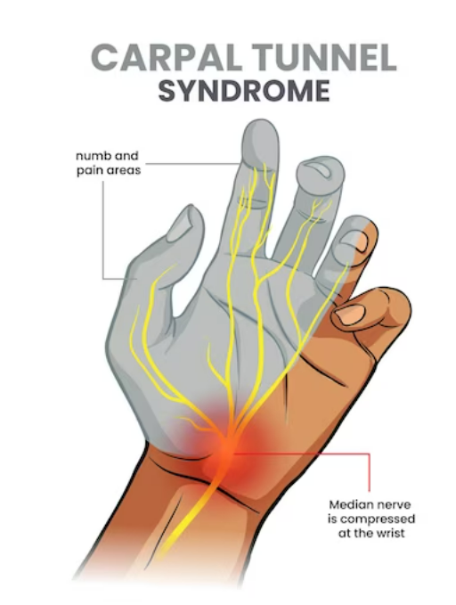 Carpal tunnel syndrome (CTS) is a common condition that affects the hands and wrists, causing symptoms like pain, numbness, tingling, and weakness. It occurs when the median nerve, which runs from your forearm to your hand, becomes compressed as it passes through a narrow passageway in your wrist called the carpal tunnel. This compression can result from various factors, including repetitive hand motions, wrist injuries, underlying health conditions, and even genetics.